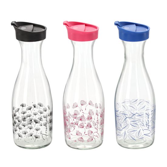 Karafa 1,0l, ODESA, 3barvy DEKOR, sklo, uz.víčkoSkladem e-shop, méně než 5ks154 Kč/ ks127 Kč bez DPH