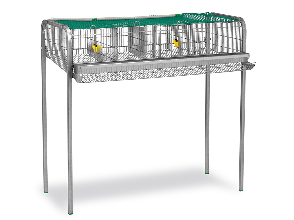 Klec na křepelky vhodná k chovu pro 20 až 24 ks křepelek o rozměrech 104 x 58,5 x 100 cm. Jedná se o 1 patrovou klec s 4 oddíly, umístěnou na vysokých nohách, která je vybavena snáškovým zásobníkem na křepelčí vejce, krmítkem a napáječkami.