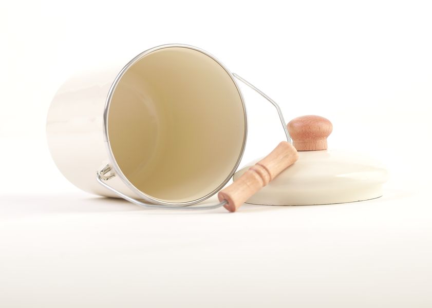 konev 1,6l na mléko KRÉMOVÁ, d12x15cm, smalt+dřevo