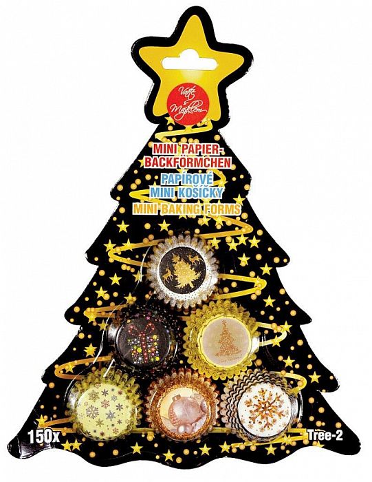 košíček d30x20mm VÁNOČNÍ-6x25ks, Tree-2, stojan, papír