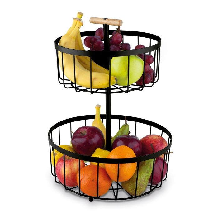 Košík 2patrový, 38x29cm, drát.černý, dřev.ruk.