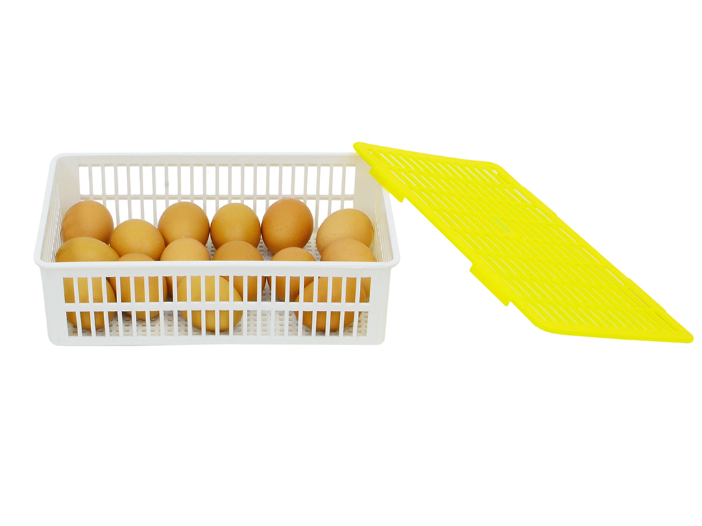 K umístění vajec před vylíhnutím ze skořápky, vhodný do líhní CIMUKA série PD, s kapacitou 15ks slepičích vajec, snadná manipulace přes víko košíku, vysoká cirkulace vzduchu - prodyšná konstrukce, z omyvatelného plastu.