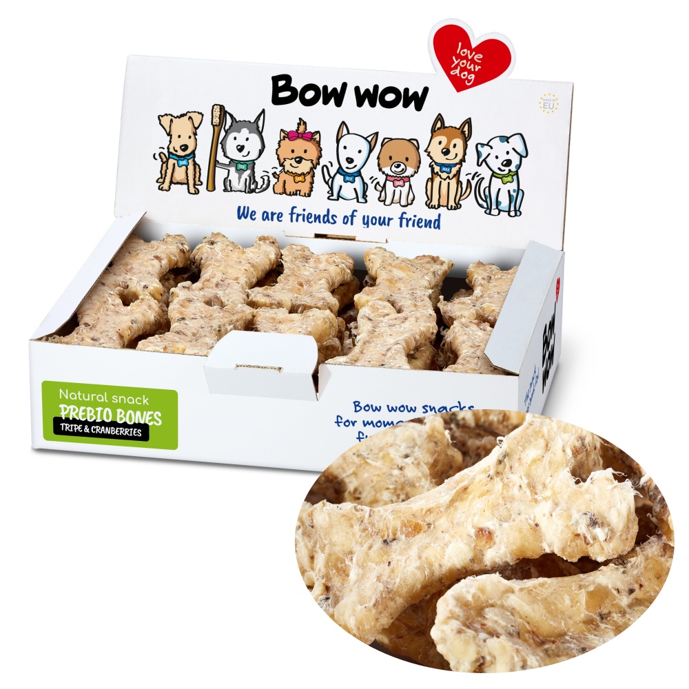 Naturální pochoutka pro psy ve tvaru kosti s dršťkami, šípkem a brusinkami.