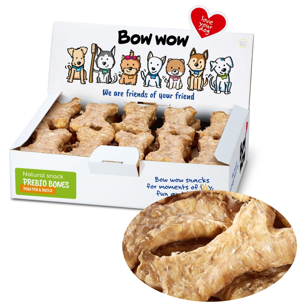 Pochoutky pro psy bez lepku ve tvaru kosti s játry a yuccou.