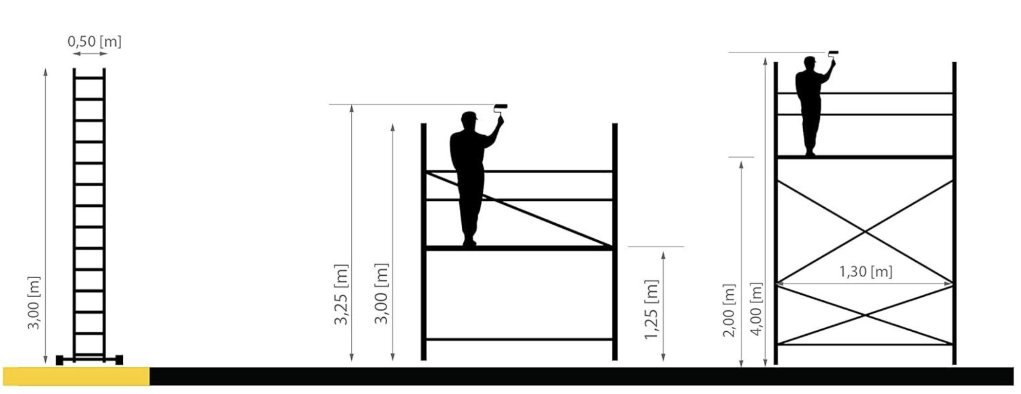 ⚠️ Výška lešení 3 m (plošina 2m), maximální pracovní výška 4 m