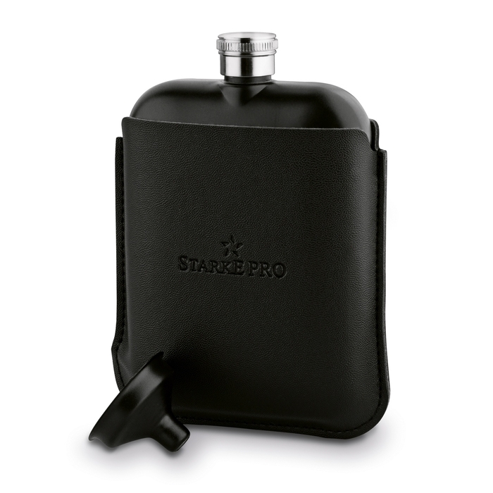 likérka 0,17l NR plochá černá, pouzdro, nálevka, krabička DB