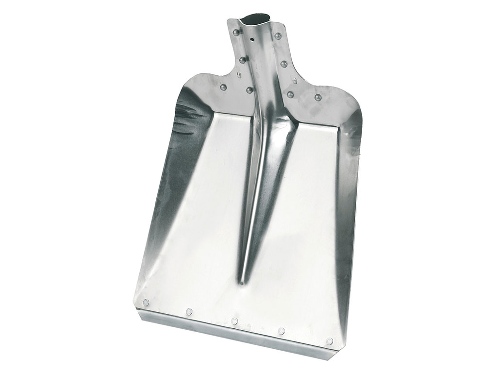 Hliníková lopata, s pozinkovanou hranou, bez násady, průměr pouzdra 38 mm na násadu, rozměry (šířka) 36 cm.
