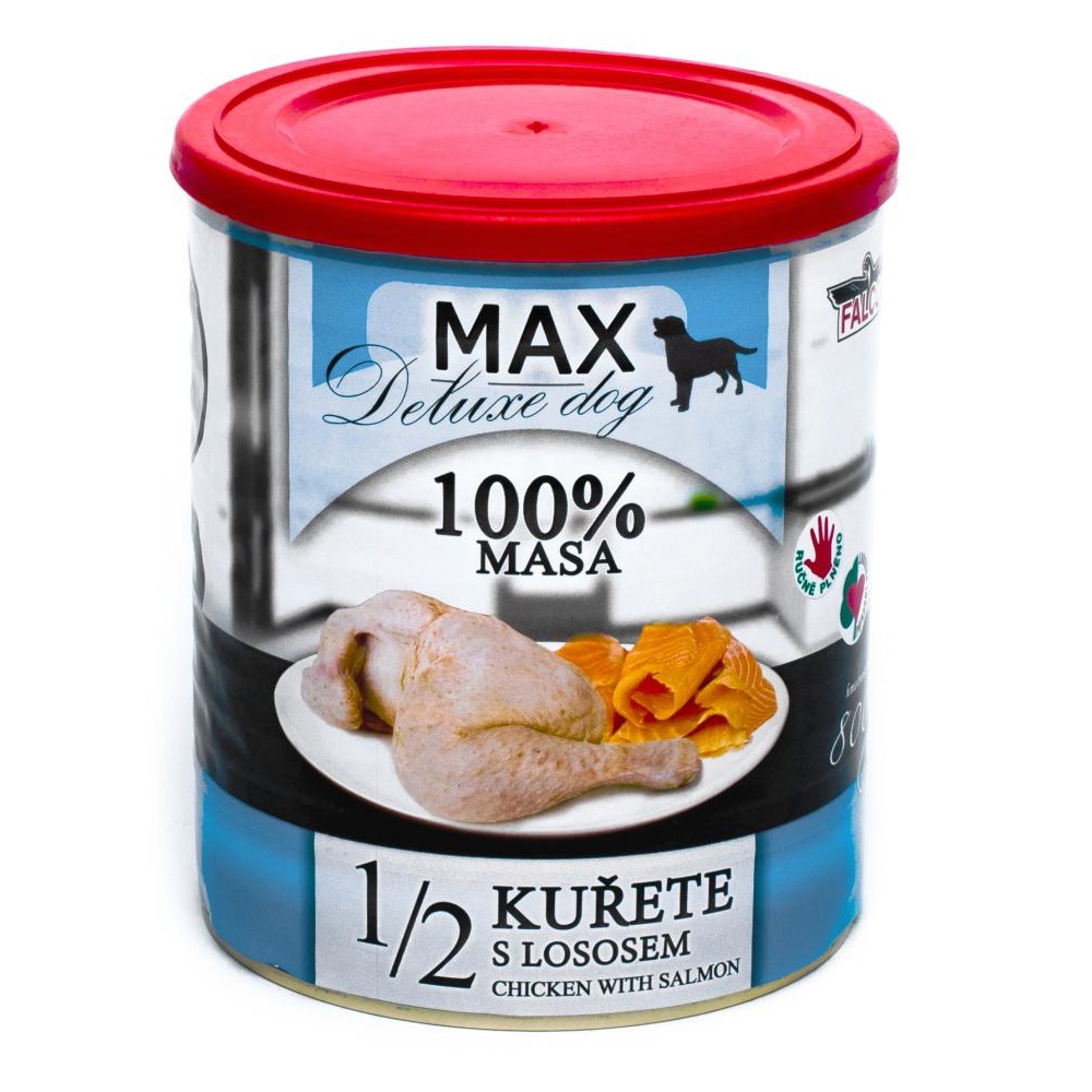 - MAX Deluxe Dog 1/2 kuřete s lososem, konzerva 800 g