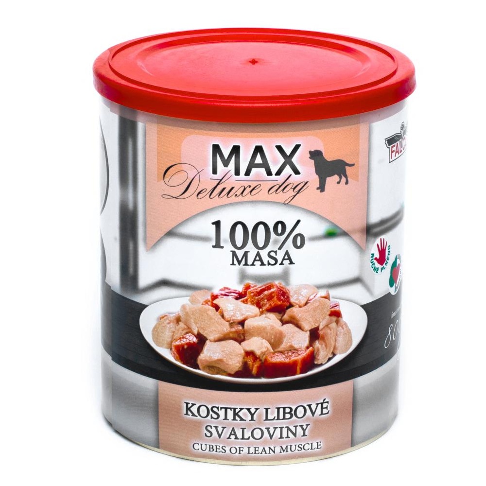 - MAX Deluxe Dog kostky libové svaloviny, konzerva 800 g