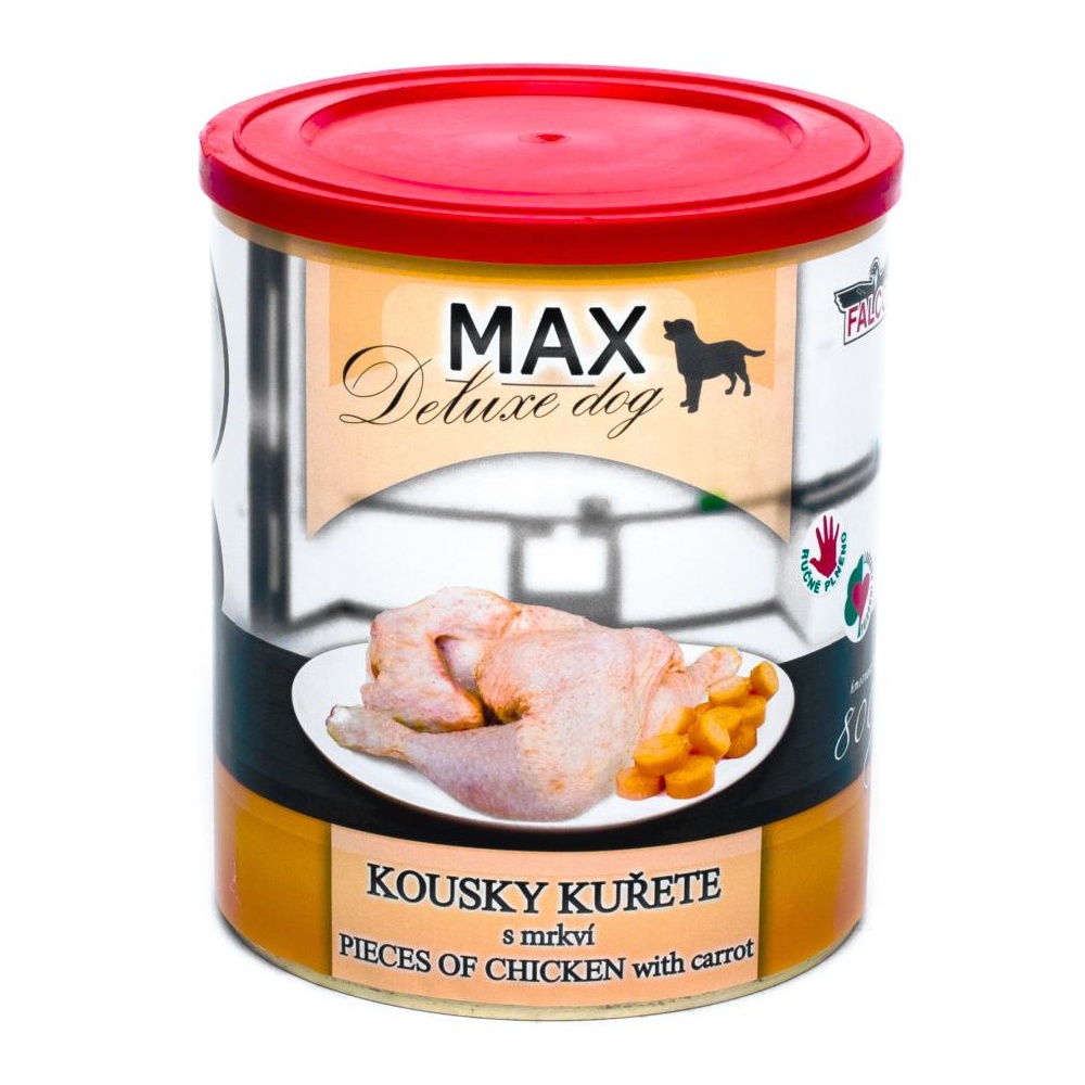 - MAX Deluxe Dog kousky kuřete s mrkví, konzerva 800 g