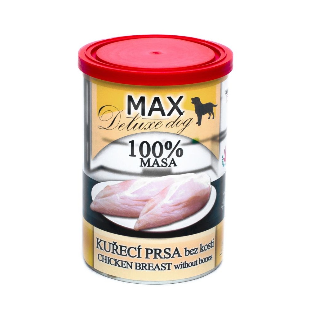 - MAX Deluxe Dog kuřecí prsa bez kosti, konzerva 400 g