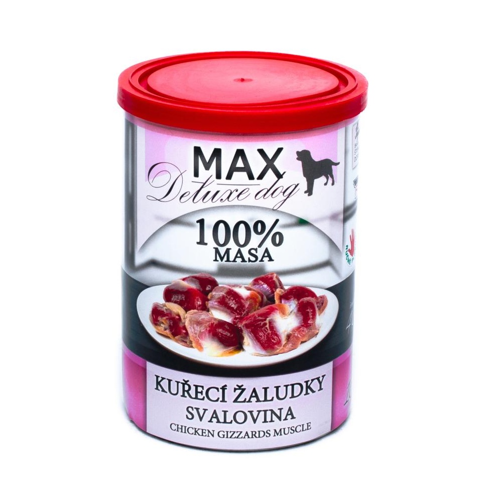 - MAX Deluxe Dog kuřecí žaludky - svalovina, konzerva 400 g