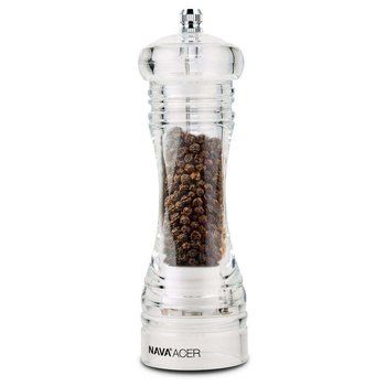 Mlýnek z průhledného akrylu na mletí zrnek pepře a mořské soli. Má keramické mlecí otřepy a nastavitelnou tloušťku mletí Materiál: akryl,keramika, nerezová ocel