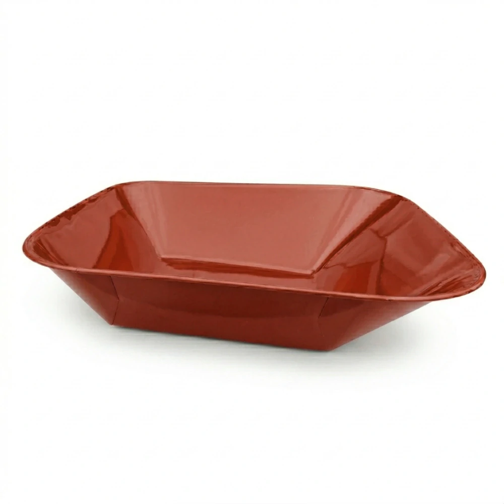 Náhradní plechová korba o objemu 60 l je kvalitní náhradní díl pro stavební kolečka. Je vyrobena z kvalitního ocelového plechu s práškovým nástřikem v elegantní černé barvě (komaxit), který zajišťuje odolnost proti korozi a dlouhou životnost i při častém používání v náročných podmínkách (např. na stavbě, v dílně nebo na zahradě). Korba díky své kapacitě pojme větší množství materiálu – sypké stavební směsi, hlínu nebo další náklady. Tlouštka plechu 0,8mm.