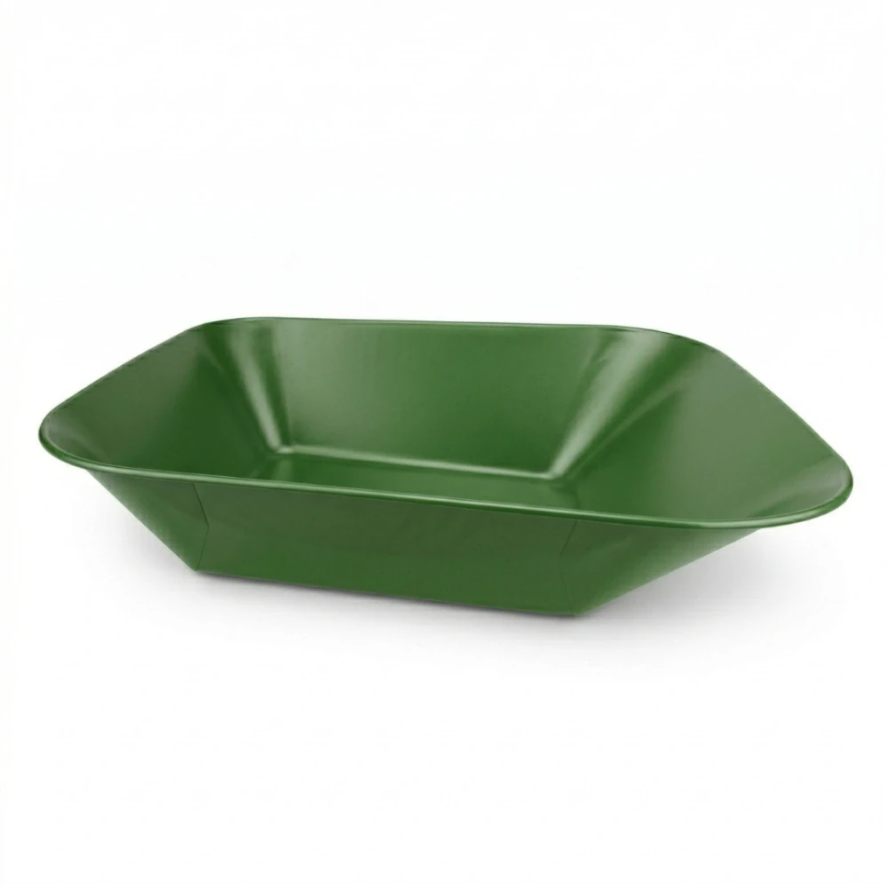 Náhradní plechová korba o objemu 60 l je kvalitní náhradní díl pro stavební kolečka. Je vyrobena z kvalitního ocelového plechu s práškovým nástřikem v elegantní černé barvě (komaxit), který zajišťuje odolnost proti korozi a dlouhou životnost i při častém používání v náročných podmínkách (např. na stavbě, v dílně nebo na zahradě). Korba díky své kapacitě pojme větší množství materiálu – sypké stavební směsi, hlínu nebo další náklady. Tlouštka plechu 0,8mm.