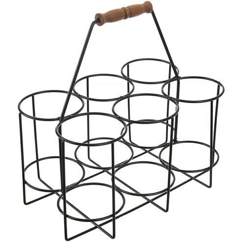nosič 6ks lahví (piv)29x19,5x28,5cm, nosn. 5kg, kov/dřevo
