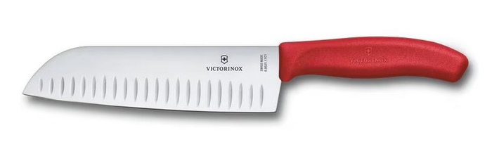 - Nůž 17cm SANTOKU, rovný, vroubk., červený, blistr, VICTORINOX