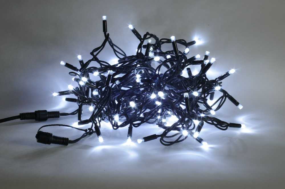 Kvalitní robustní PROFI řetěz s 200 VELKÝMI LED diodami a silnou gumovou izolací pro celoroční použití.