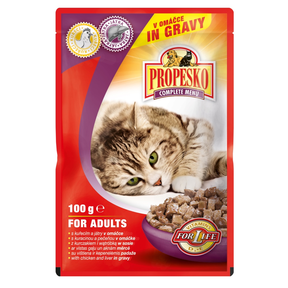PROPESKO Cat kuřecí a játra, kapsa 100 gSkladem centrální sklad | odešleme do 1-3 prac. dnů12 Kč/ ks11 Kč bez DPH