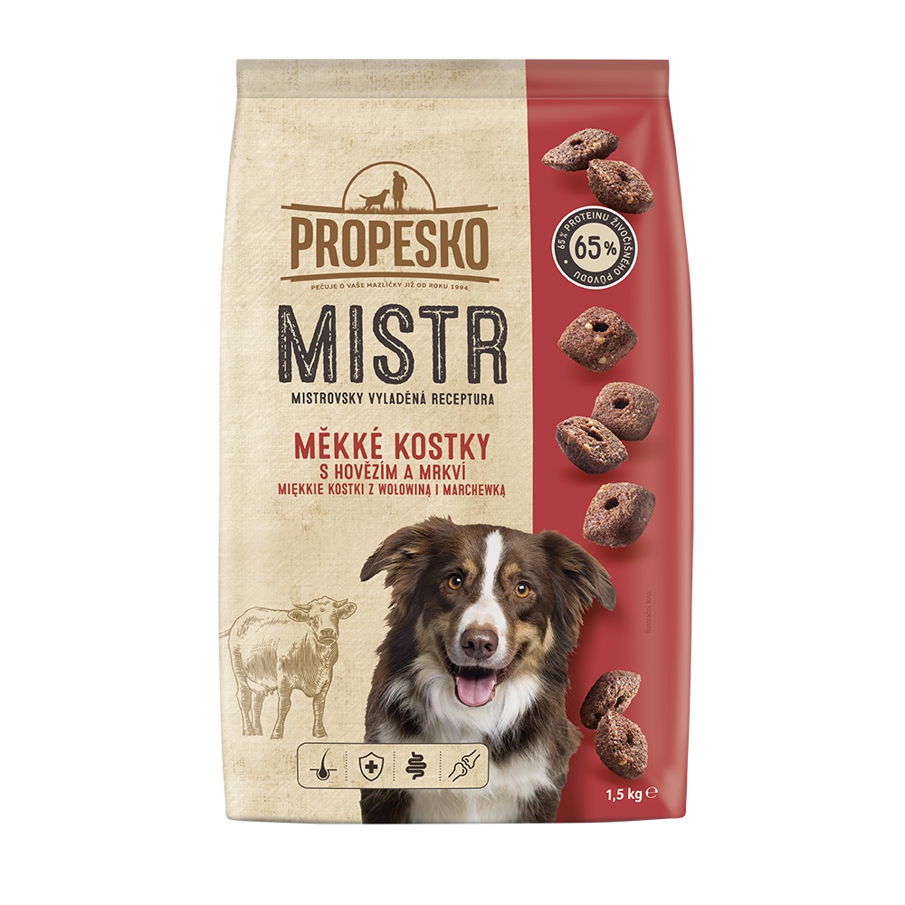 - Propesko Dog Mistr Adult měkké kroužky s hovězím 1,5 kg