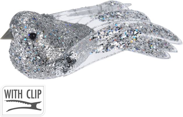 PTÁČEK 2kusy 15cm, klip, STŘÍBRNÝ, vánoční