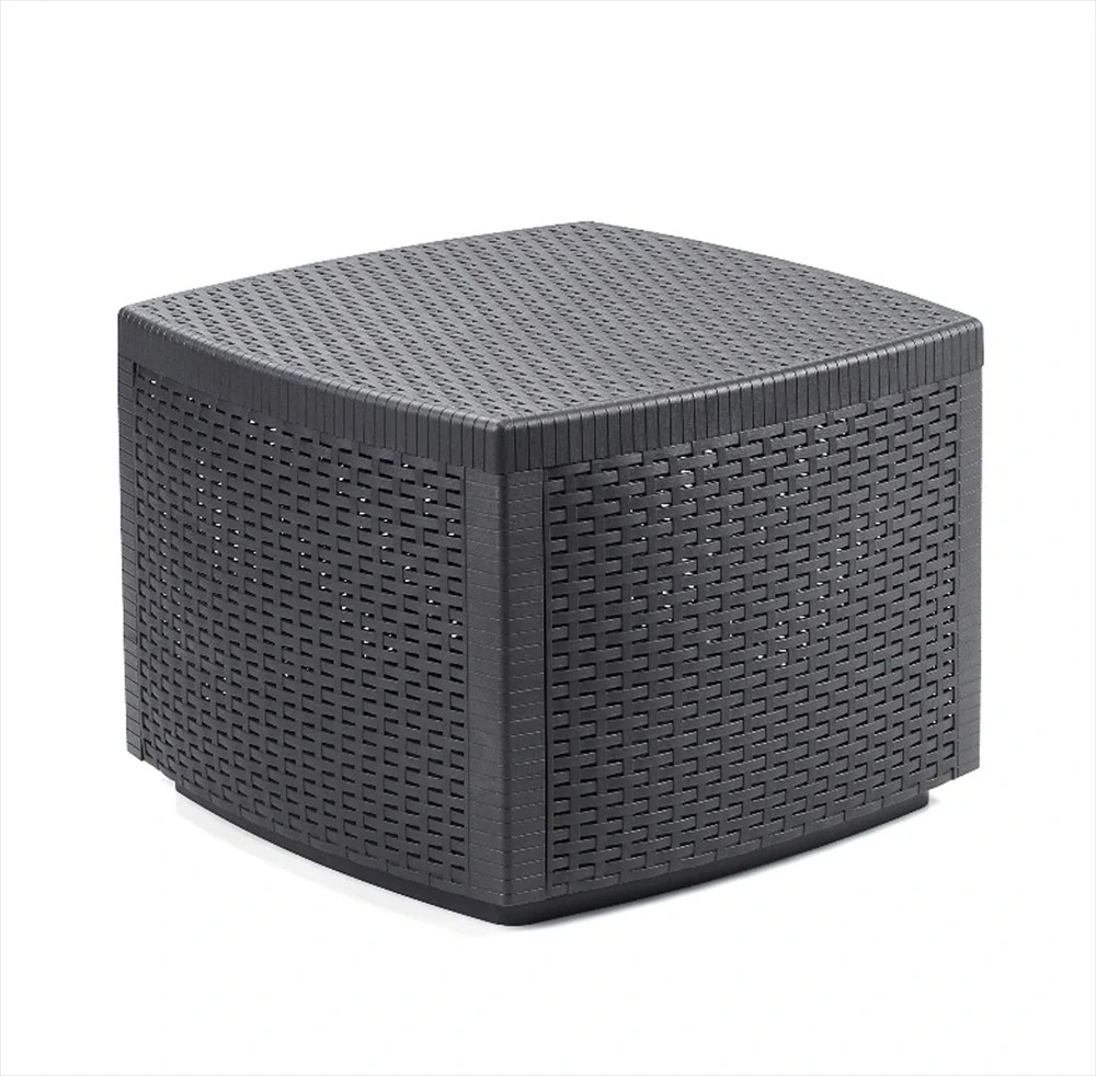 Odkládací ratanový stolek z polypropylenu s úložným boxem.