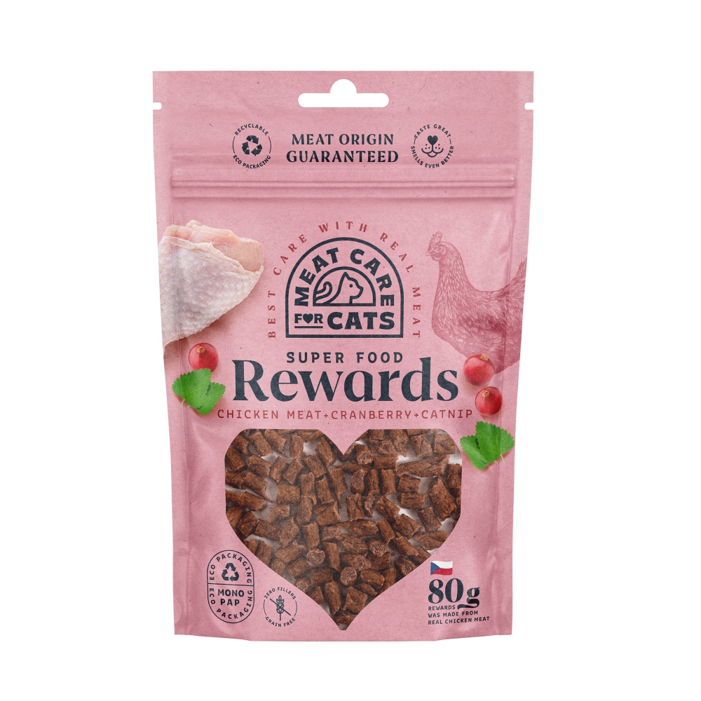 Rewards Cat kuřecí s brusinkami a šantou je pamlsek ze skutečného čerstvého masa. Lehce stravitelné kuřecí maso v kombinaci s brusinkou pro správnou funkci močových cest a šantou, která je pro většinu koček neodolatelná.