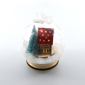 Skleněná ozdoba s dekorem "dům" a umělým sněhem