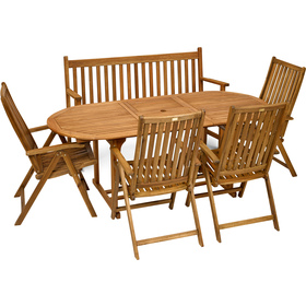 Základem sestavy jsou 4 křesla, třímístná lavice a rozkládací stůl