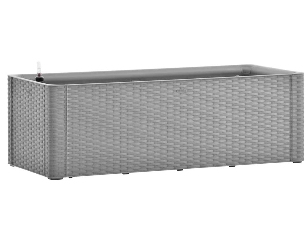 Samozavlažovací truhlík, pro vnitřní i venkovní použití, s ukazatelem hladiny vody, z polypropylenu, barva šedá, o objemu 90l, rozměry 100x43x33cm.