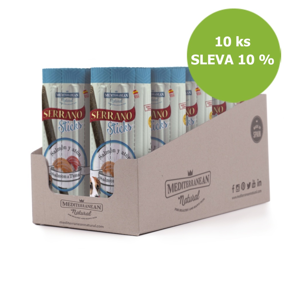Serrano Dog Sticks Salmon & Tuna, tyčinka 16 x 12 g (10 ks) SLEVA 10 %Skladem centrální sklad | odešleme do 1-3 prac. dnů814 Kč/ bal727 Kč bez DPH