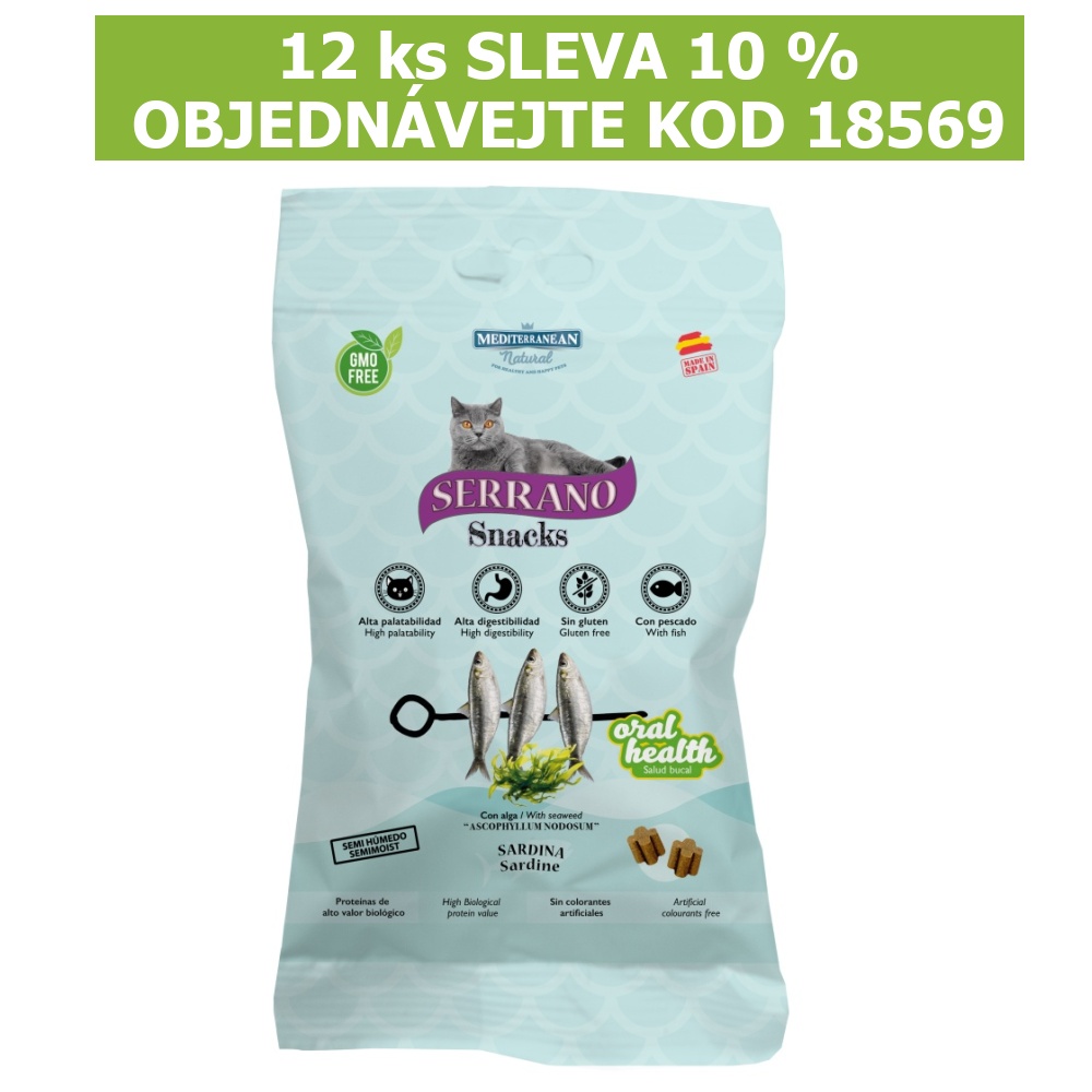Serrano Snack Cat Oral Care Sardine 50 gSkladem centrální sklad | odešleme do 1-3 prac. dnů38 Kč/ ks34 Kč bez DPH