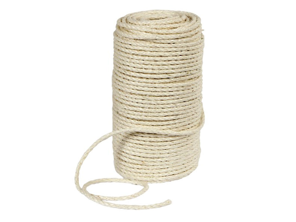 Přírodní agávové, sisalové lano, vhodné na výrobu nebo opravu škrabadla, šetrné k životnímu prostředí, rozměry Ø 0,5 cm, 100 m.