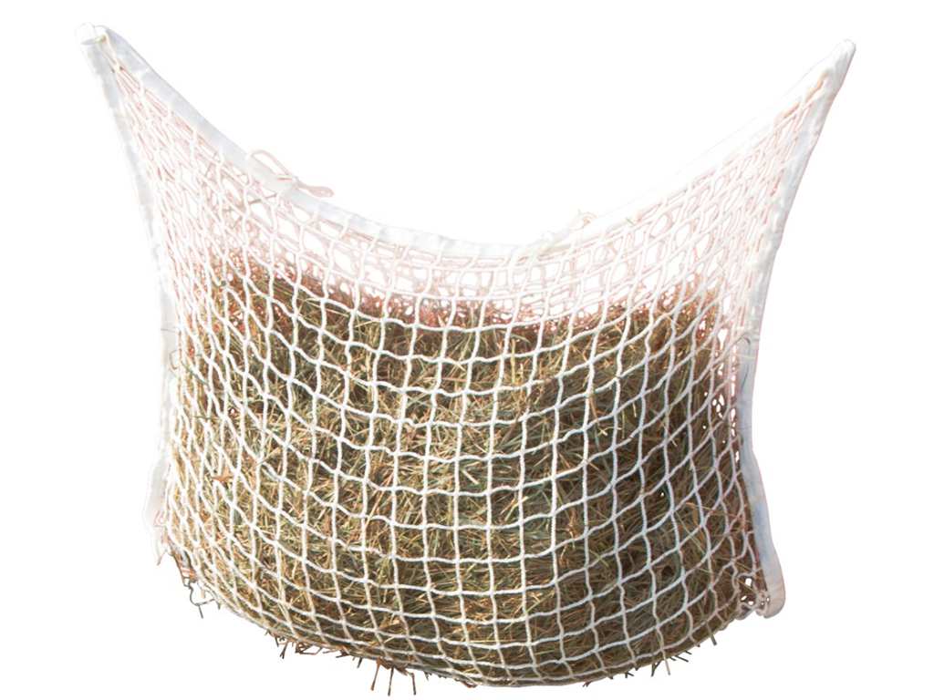 Síť na seno, velikost oka 3x3 cm, extra odolná proti roztržení, vhodná pro poníky a přívěsy, podporuje správné krmení, až o 30% nižší plýtvání krmivem, kapacita 4 kg, rozměry 90x60 cm.