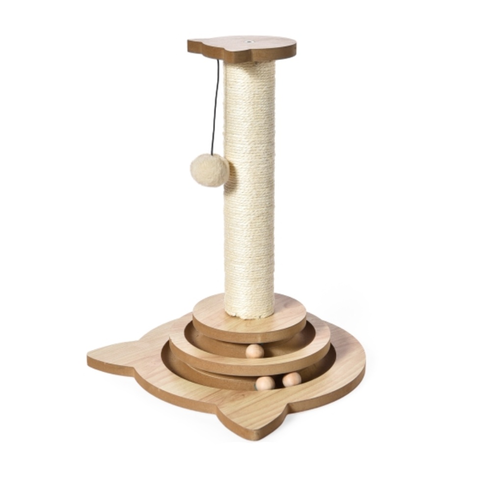 Sloupové sisalové škrábadlo se zavěsnou hračkou společně s interaktivní hračkou v podobě hlavolamu s míčkem pro dlouhé hodiny zábavy vaší kočky.