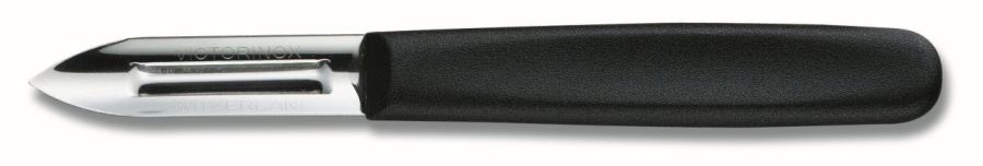 Oboustranná škrabka na brambory a jiné tvrdné druhy ovoce a zeleniny s ostrou čepelí a hrotem, díky kterému snadno odstraníte všechny vady.