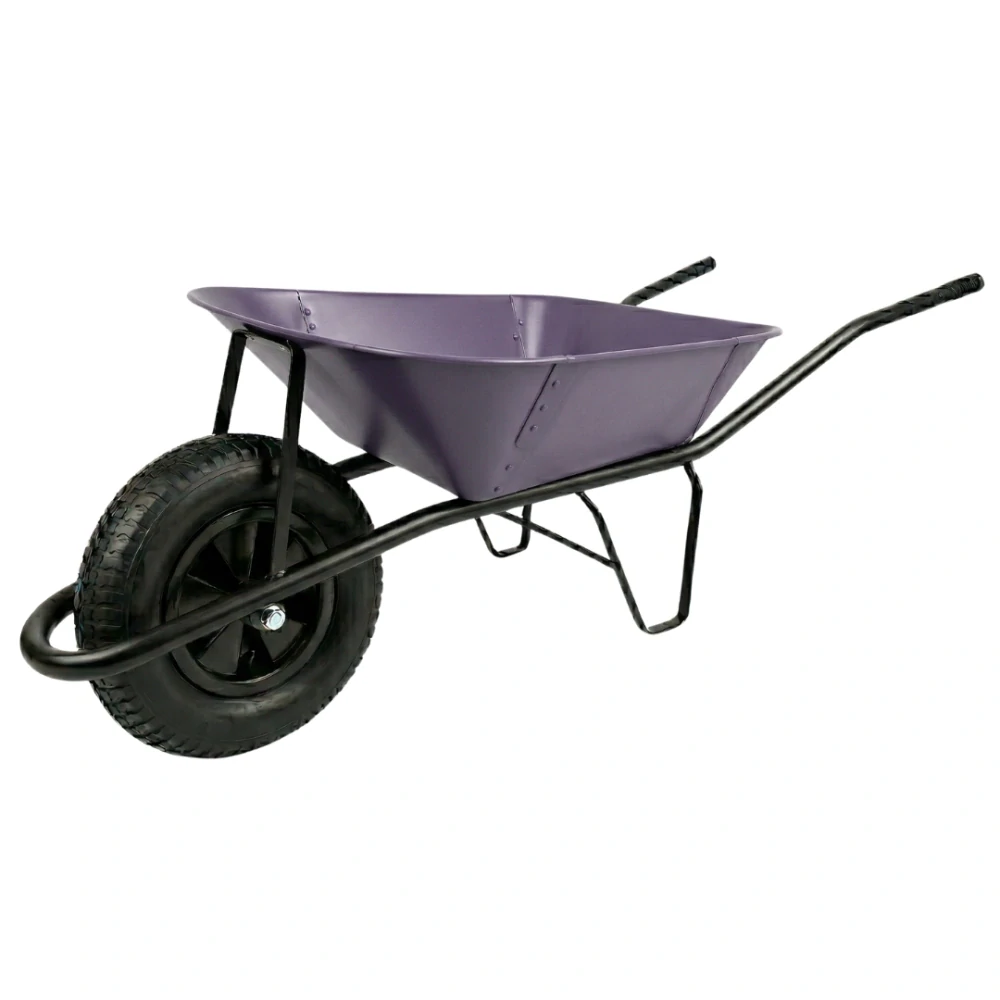 Stavební kolečko s fialovou korbou 60L, nafukovací kolo