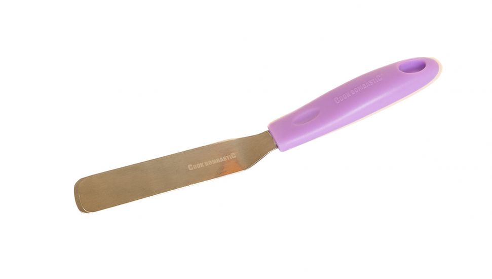 Nerezová špachtle s ohybem a plastovou rukojetí je vhodná pro rozstírání krému, tekuté čokolády.