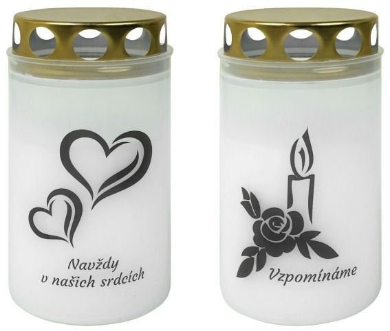 Svíčka hřbitovní 140g, Vzpomínáme, Navždy..., bílá, kovové víčko• Skladem centrální sklad | odešleme do 2-3 prac. dnů43 Kč/ ks36 Kč bez DPH