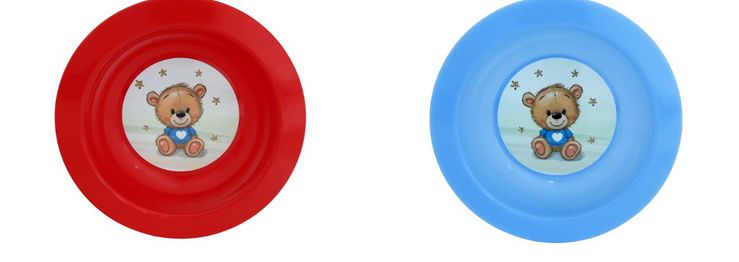 - Talíř d17,3cm hlub. MEDVÍDEK TRIČKO IML, aqua, červ., dětský, plast