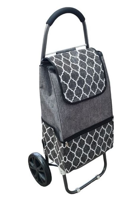 Praktická nákupní taška s kovovou konstrukcí a dvěma kolečky. Uzavírání na stahovací šňůru je kryté klopou. Na přední straně tašky je kapsa na zip. Nosnost max 24 kg. Tašku lze snadno vyjmout z její konstrukce a složit na plocho.