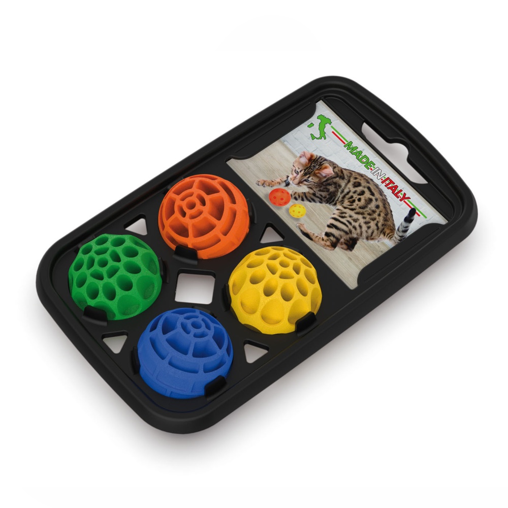 - Těžké plastové míčky pro kočky v držáku (4 ks)