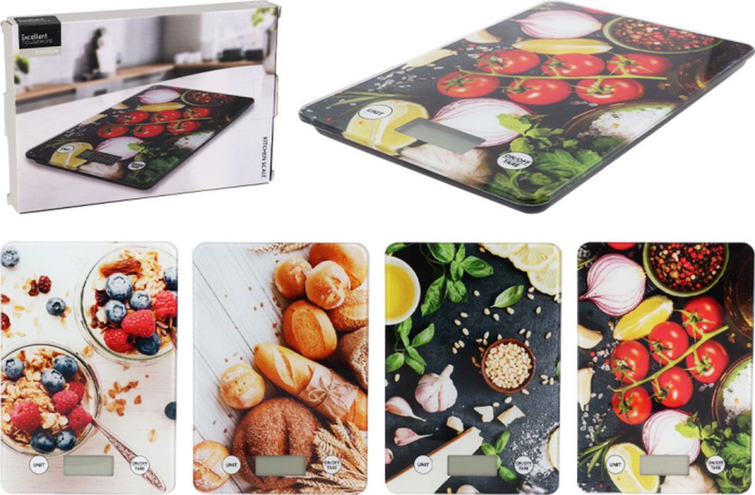 Váha kg kuch.dig., 4dekory, 15x23cm, sklo