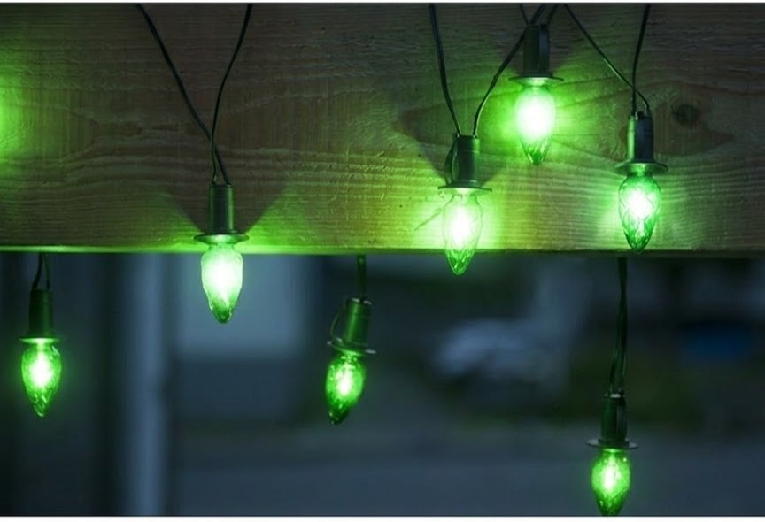 VENKOVNÍ souprava LED Filament Šiška zelená, možnost prodloužení, černá kabeláž + napájecí trasformátor