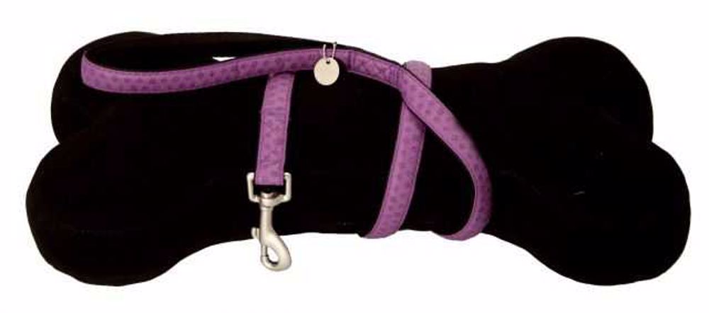 kožené vodítko fialové barvy s celopotiskem podšitý jemným nylonem ve stejné barvě