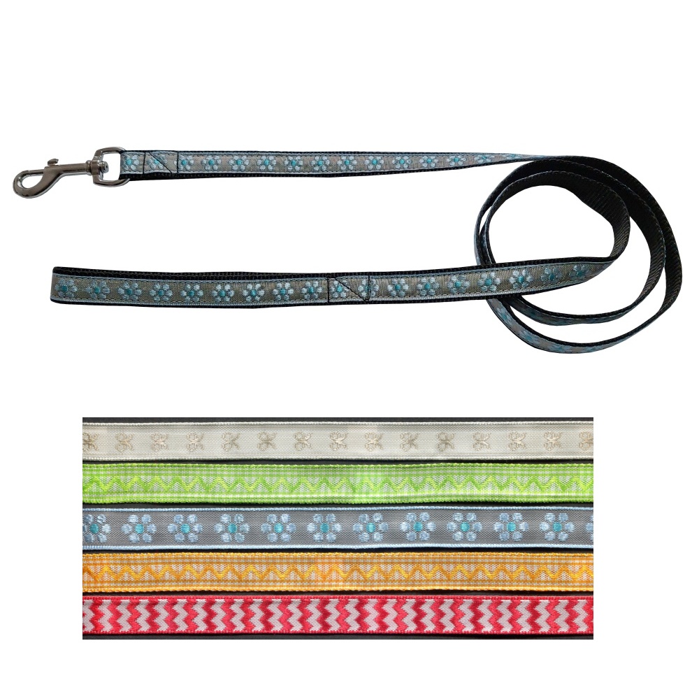 Popruhové vodítko s ozdobnou stuhou je skvělým doplňkem pro společné procházky se psem.