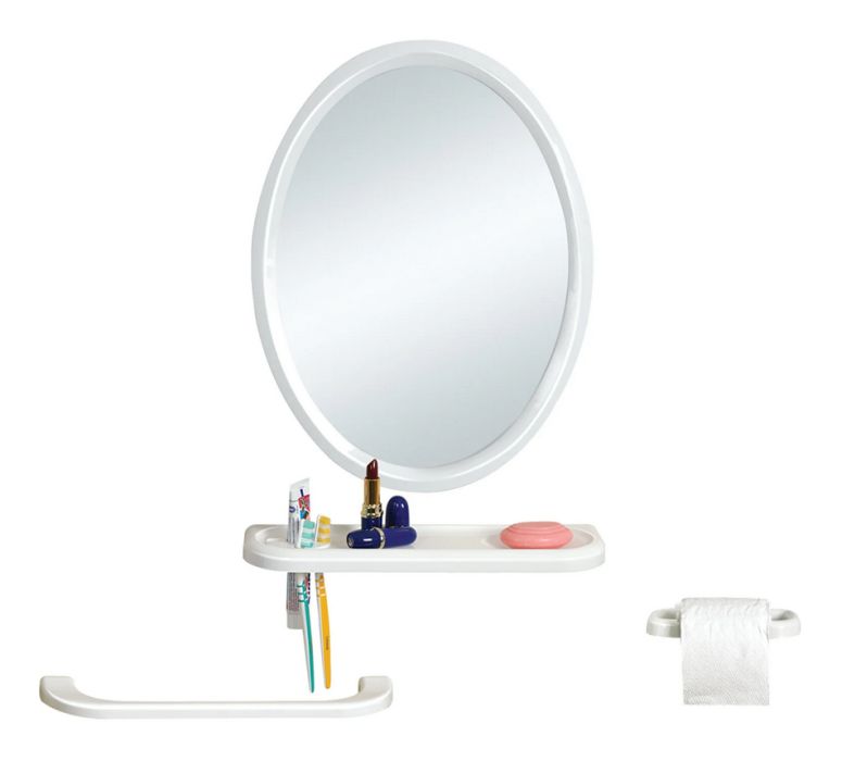 Zrcadlo 50x39cm ovál+polička+2držáky-mýdlo,ručník plast.rám